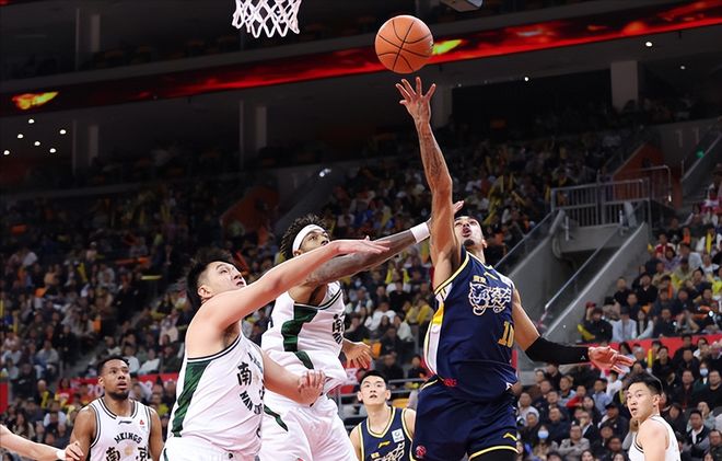 南京队虽然整体实力不济,但新援郭昊文的发挥真是没的说,此役,郭昊文运动战27投14中,其中三分球12中6,他犀利的突破一次又一次洞穿了广东男篮的防线,把主队的油漆区搅了个天翻地覆。这位打法酷似东契奇的“国产版卢卡”交出了一份42分6篮板8助攻的答卷,其中得分创造了生涯新高。