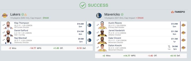 湖人得到克莱-汤普森、丹尼尔-加福德、纳吉-马绍尔;