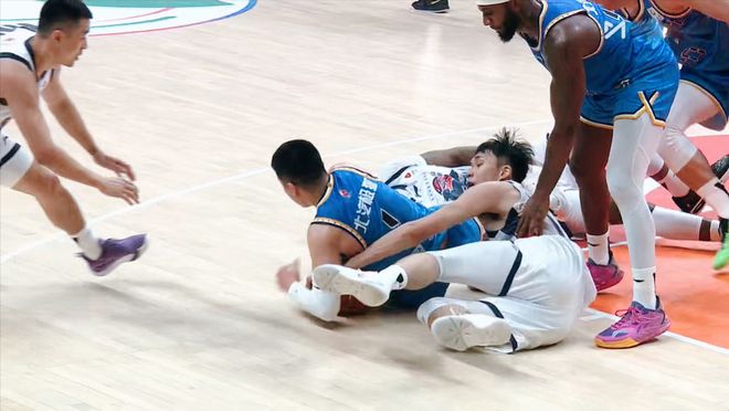 下半场回来,郭凯错失两次绝好的得分机会。克里斯精彩空中接力暴扣,陈盈骏顶着防守命中高难度三分。双方你来我往,比分始终咬的非常紧,鲍威尔反击三分,许利民赶紧请求暂停。暂停回来,裁判在一分钟连吹山东三个犯规,陶汉林、郭凯接连吃到第4次犯规,鲍威尔、于德豪连中两记三分,三节战罢,山东男篮领先7分。